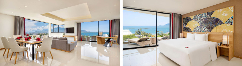 Diện tích phòng khách sạn cực rộng từ 70 – 400 m2 đảm bảo mang đến bạn một cảm giác thoải mái ngay từ những ánh nhìn đầu tiên. Tất cả các phòng đều được thiết kế với tầm nhìn ôm trọn vịnh biển để tạo cảm giác gần gũi với thiên nhiên, cùng ban công riêng rộng lớn với bồn tắm lộ thiên sẽ mang đến bạn một trải nghiệm độc đáo về phong cách sống kiểu Nhật.