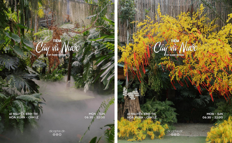 Mai vàng nở rộ giữa rừng mưa nhiệt đới. TIỆM CÂY VÀ NƯỚC đầu tiên mở ra phong trào thiết kế theo phong cách này – TIỆM CÂY VÀ NƯỚC là khu vườn nhiệt đới có hệ sinh thái đa dạng nhất Đà Nẵng. Từ hệ thống cây cối phong phú, đa tầng đến vô vàn loài động vật cùng sinh sống; đem đến một không gian trải nghiệm mới lạ và đầy thú vị. Tiệm đã mang không khí Xuân về vườn với hàng mai rực rỡ nổi bật ngay trước cổng. Dịp Tết này Tiệm sẽ hoạt động từ 6h30 đến tầm 18h (chỉ nghỉ ngày 29 và mồng 1), mọi người note lại để tiện ghé vườn chơi nhé.