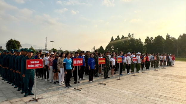 Lãnh đạo xã Quế Sơn và các vận động viên tham gia Ngày chạy Olympic – Vì sức khỏe toàn dân – Vì an ninh Tổ quốc năm 2026 tại Quảng trường 26/3. Ảnh: Minh Châu