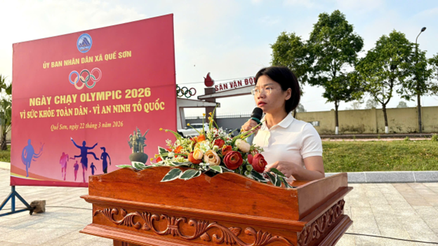 Phát biểu khai mạc, Phó Chủ tịch UBND xã Lê Thị Lập nhấn mạnh, Ngày chạy Olympic – Vì sức khỏe toàn dân – Vì an ninh Tổ quốc năm 2026 là sự kiện tiêu biểu hướng đến chào mừng kỷ niệm 80 năm ngày Thể thao Việt Nam và ngày Bác Hồ viết bài “Thể dục và sức khỏe” kêu gọi đồng bào tập thể dục (27/3/1946 – 27/3/2026); 80 năm Ngày truyền thống lực lượng An ninh nhân dân (12/7/1946 – 12/7/2026); 95 năm Ngày thành lập Đoàn Thanh niên cộng sản Hồ Chí Minh (26/3/1931 – 26/3/2026); 13 năm ngày Quốc tế hạnh phúc (20/3/2013 – 20/3/2026); 51 năm Ngày giải phóng thành phố Đà Nẵng (29/3/1931 – 29/3/2026); 51 năm Ngày giải phóng Quế Sơn (26/3/1931 – 26/3/2026). Thực hiện lời dạy của Bác, trong những năm qua, phong trào thể dục thể thao trên địa bàn xã Quế Sơn không ngừng phát triển, thu hút đông đảo các tầng lớp nhân dân tham gia, góp phần nâng cao sức khỏe, đời sống tinh thần và xây dựng cộng đồng ngày càng đoàn kết, văn minh…