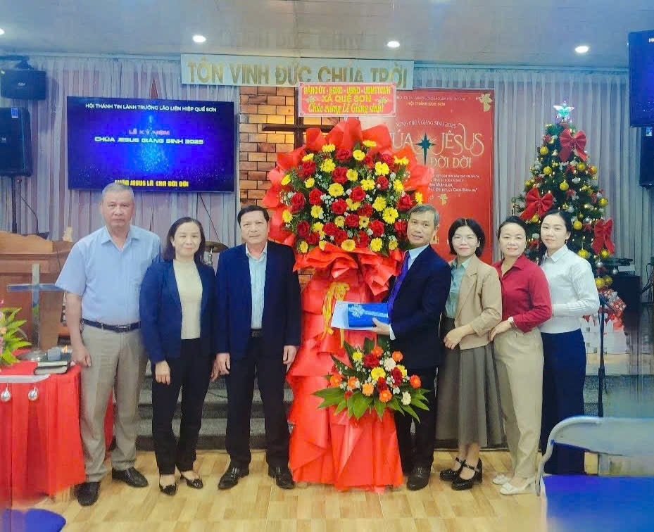 Nhân dịp lễ Giáng sinh năm 2025, sáng ngày 23/12, Phó Bí thư Thường trực Đảng ủy xã Đặng Thị Thùy Vinh đến thăm, chúc mừng Hội thánh Tin lành Quế Sơn. Cùng đi có Phó Chủ tịch UBND xã Lê Thị Lập; đại diện lãnh đạo Ủy ban MTTQ Việt Nam và các ban, ngành liên quan của xã