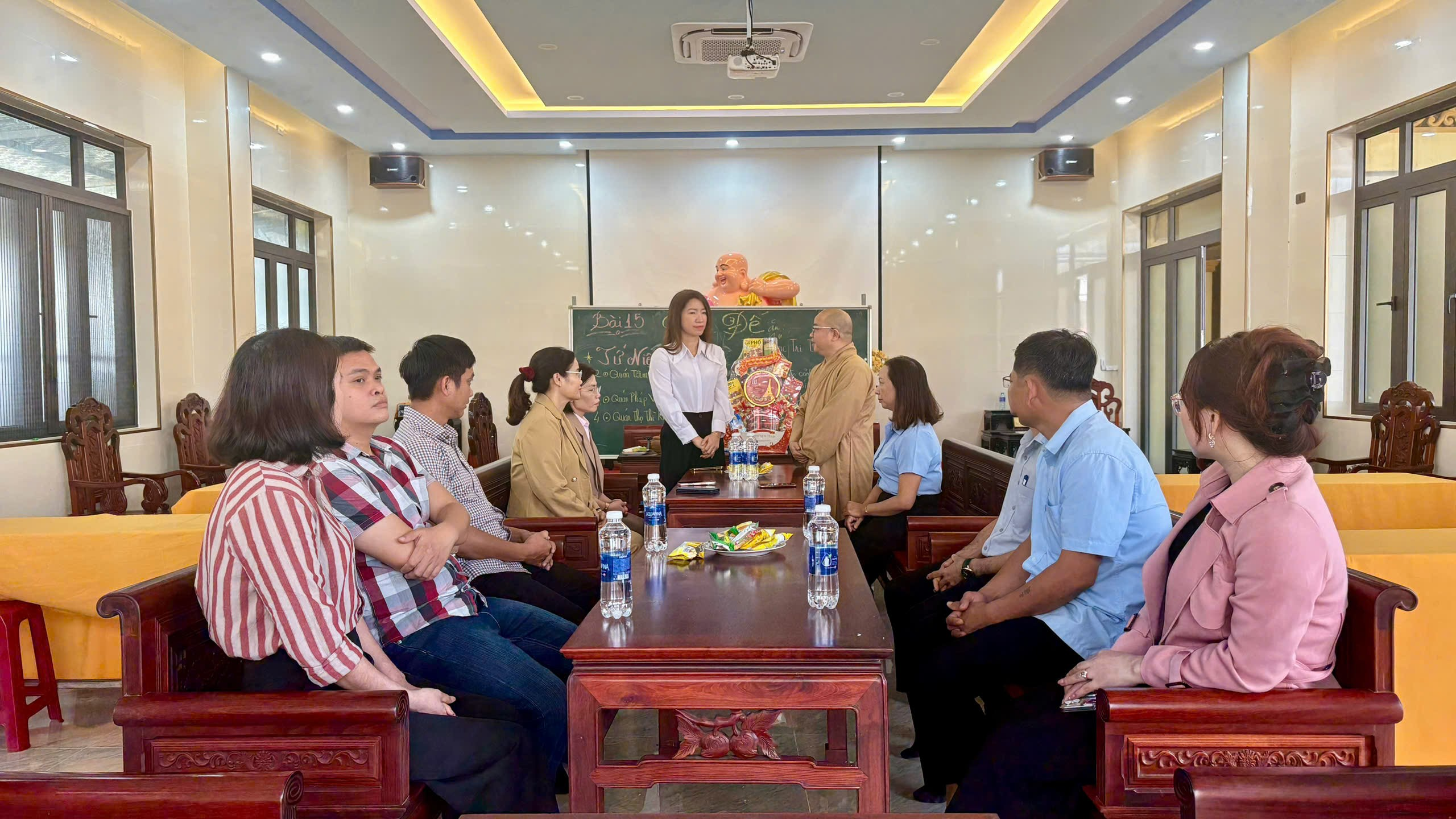 Lãnh đạo xã Quế Sơn thăm, chúc Tết tại Chùa Trung Sơn. Ảnh: Minh Châu
